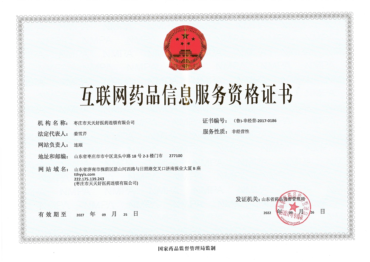 你好,歡迎訪問(wèn)棗莊市天天好醫(yī)藥連鎖有限公司官網(wǎng)!